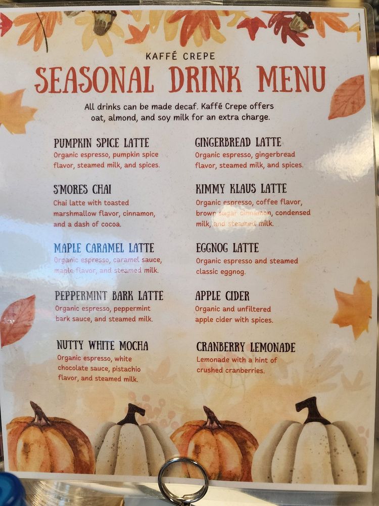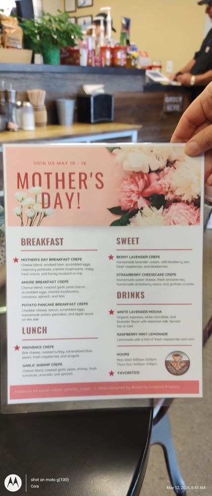 “ Always amazing. Great selection of Crepes offered,m with a seasonal menu too! Their lattes are tasty too! They have the Art of Crepes locked in. ”